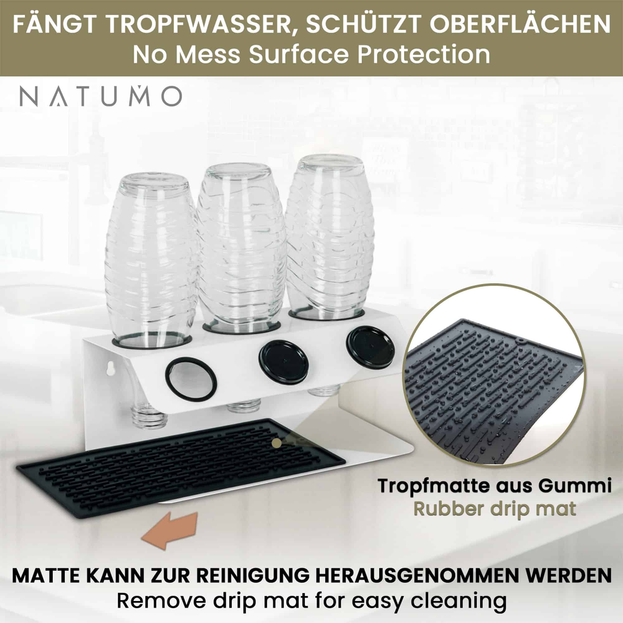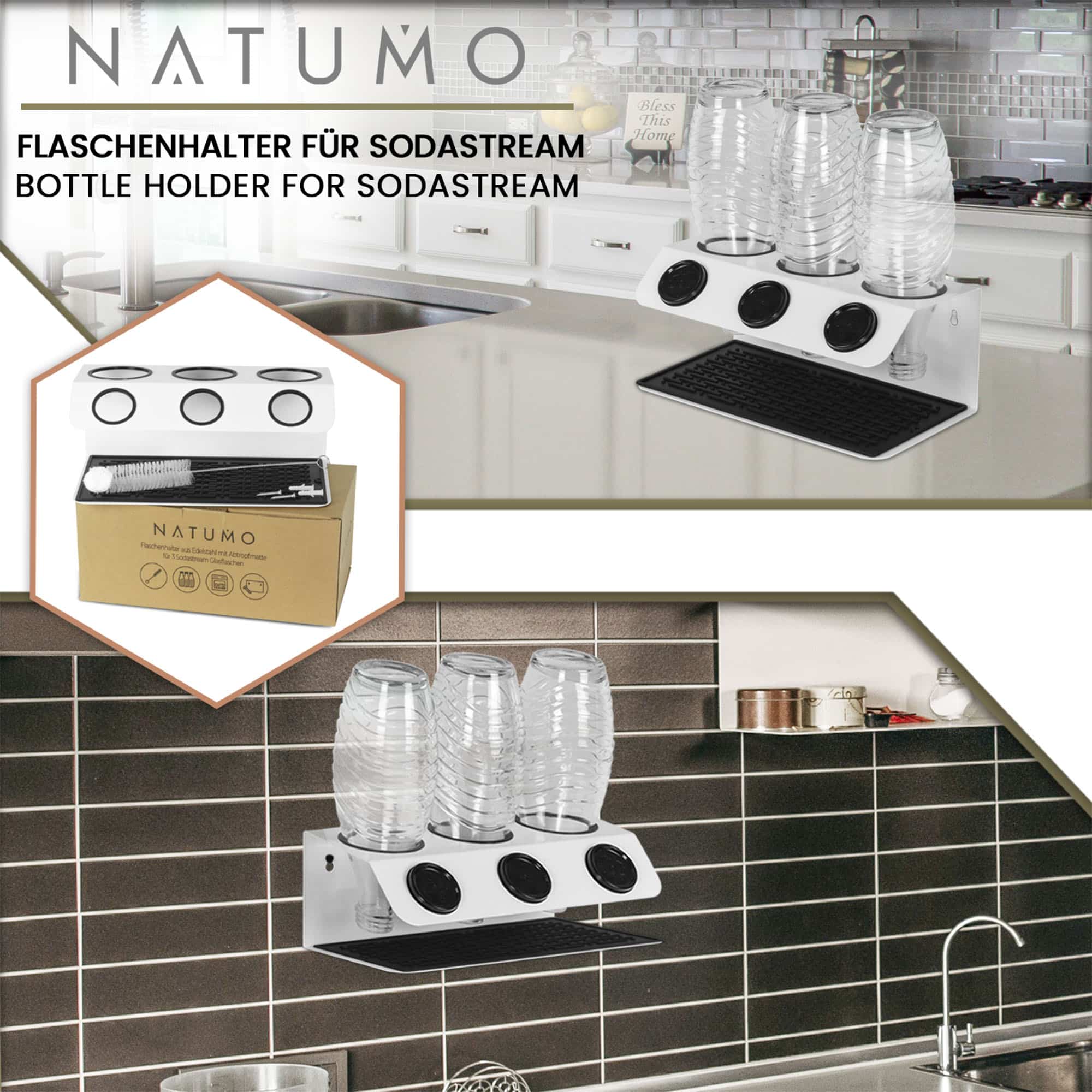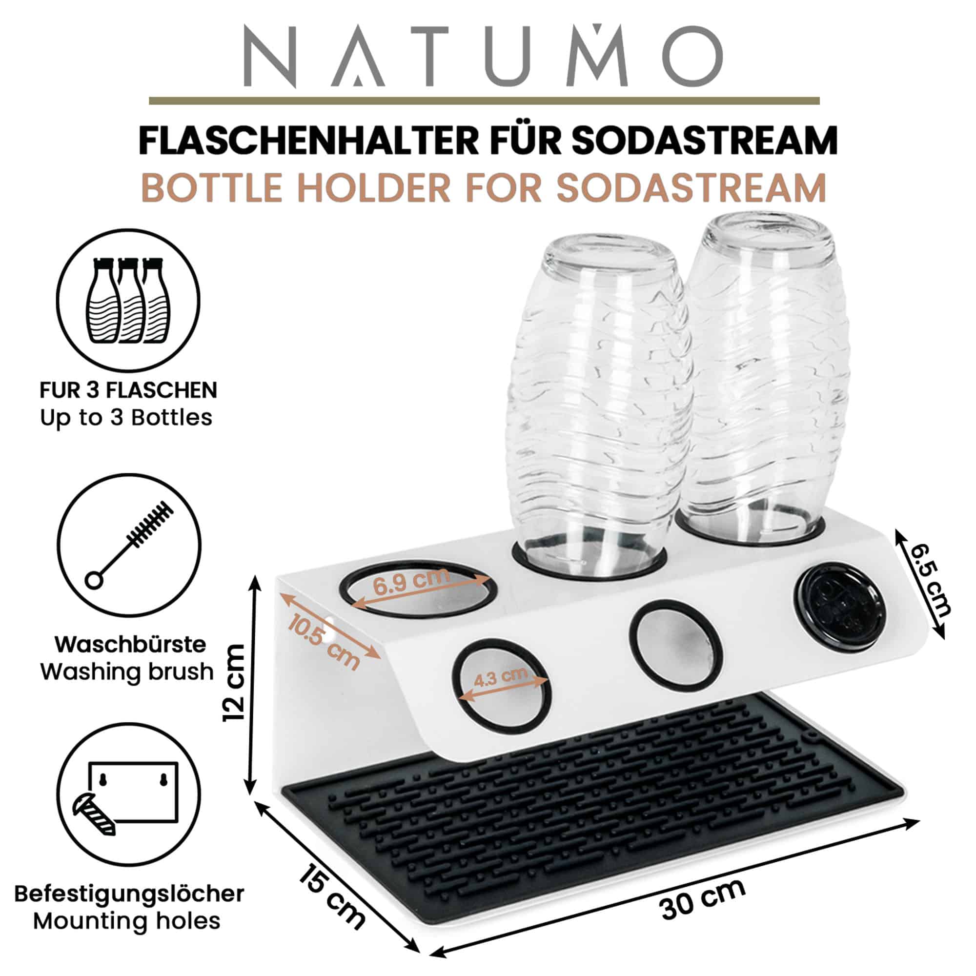 UNIVERSELL EINSETZBAR: Die Flaschen- und Deckelhalterung ist für alle SodaStream Flaschen (Crystal, Easy, Fuse & Emil) geeignet, sowie für weitere Glas- und Kunststoffflaschen ähnlicher Größe.