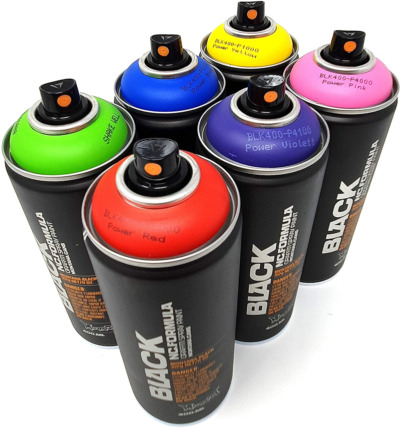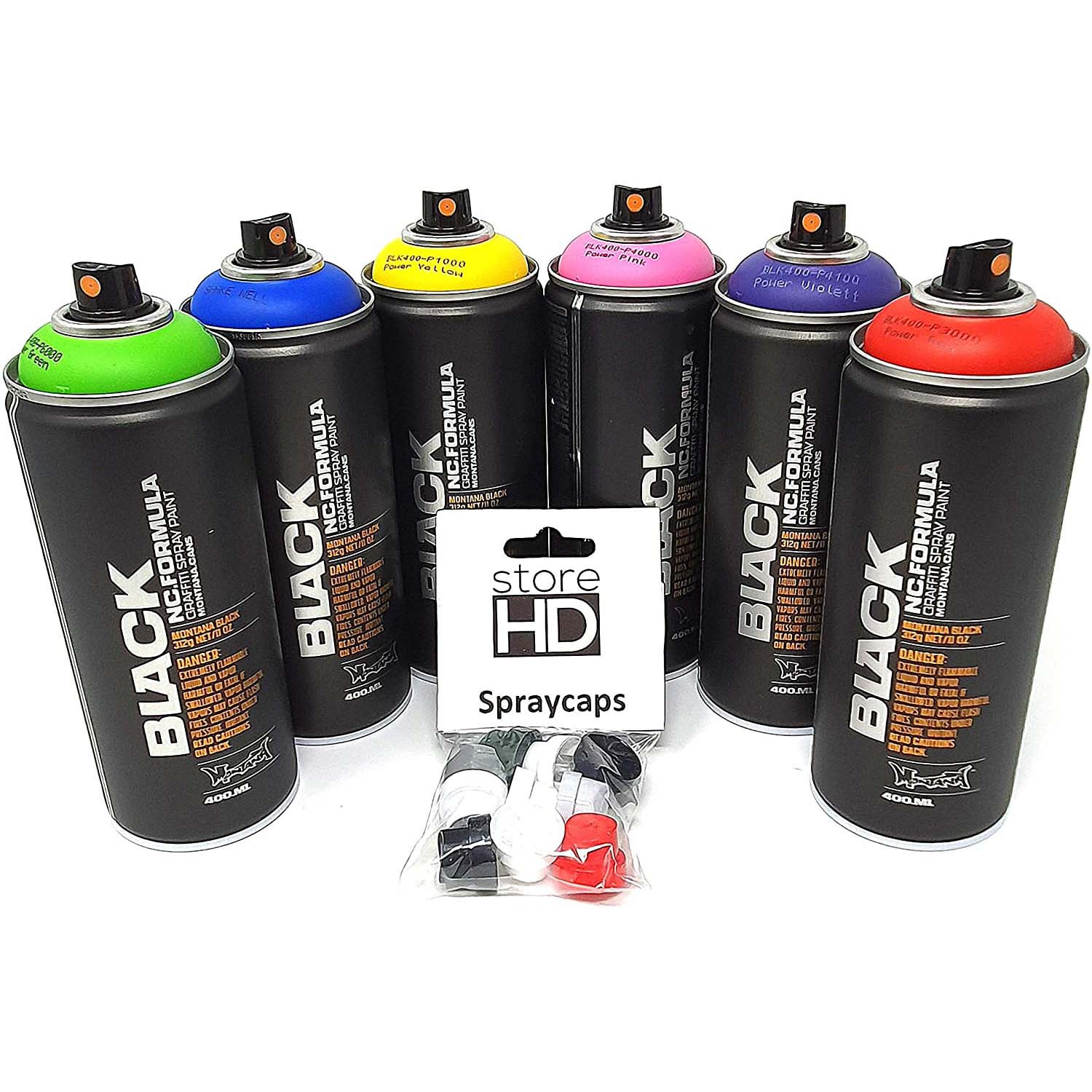Montana Black Power Sprühdosen Set – 6 Farben + Ersatzsprühköpfe – 6 x 400ml