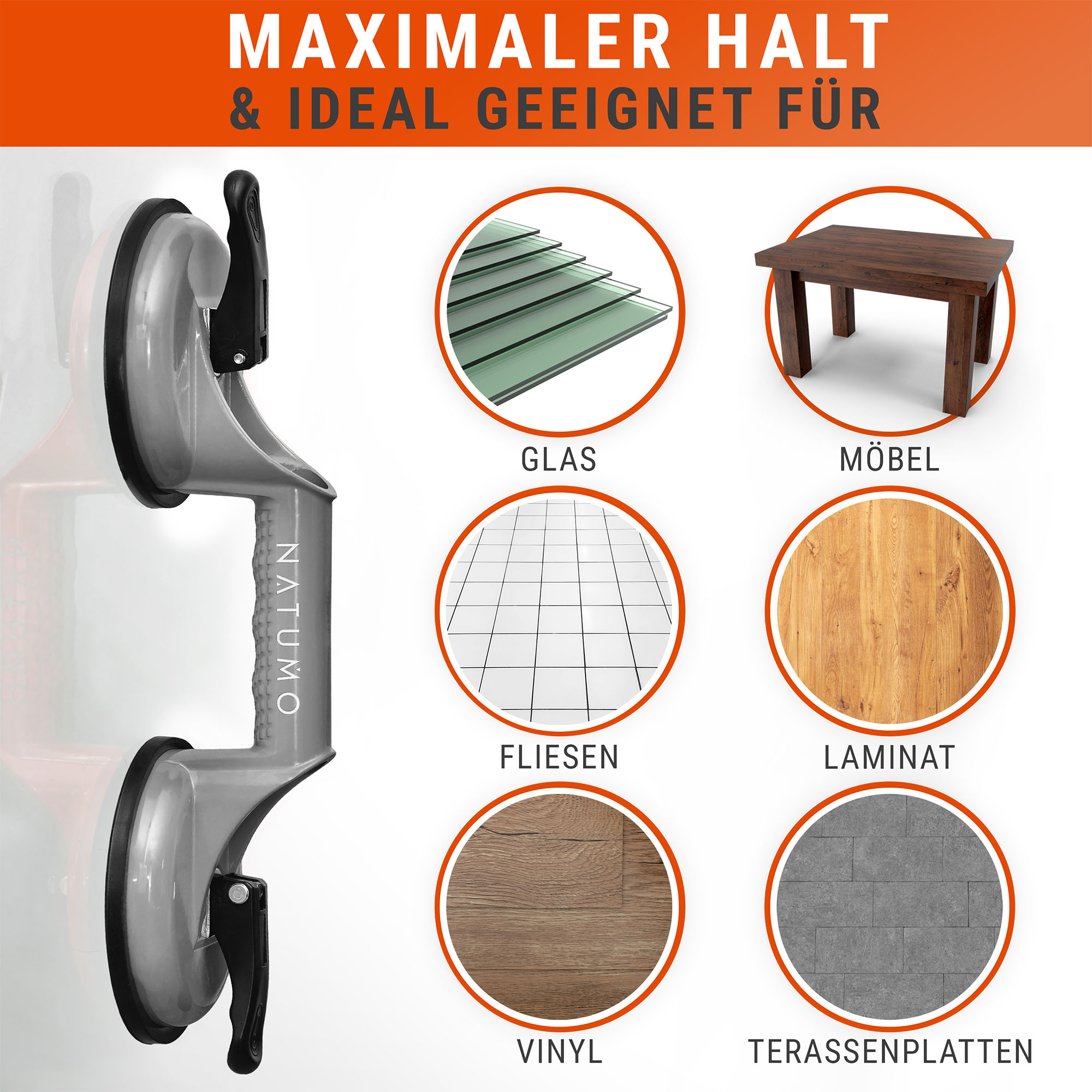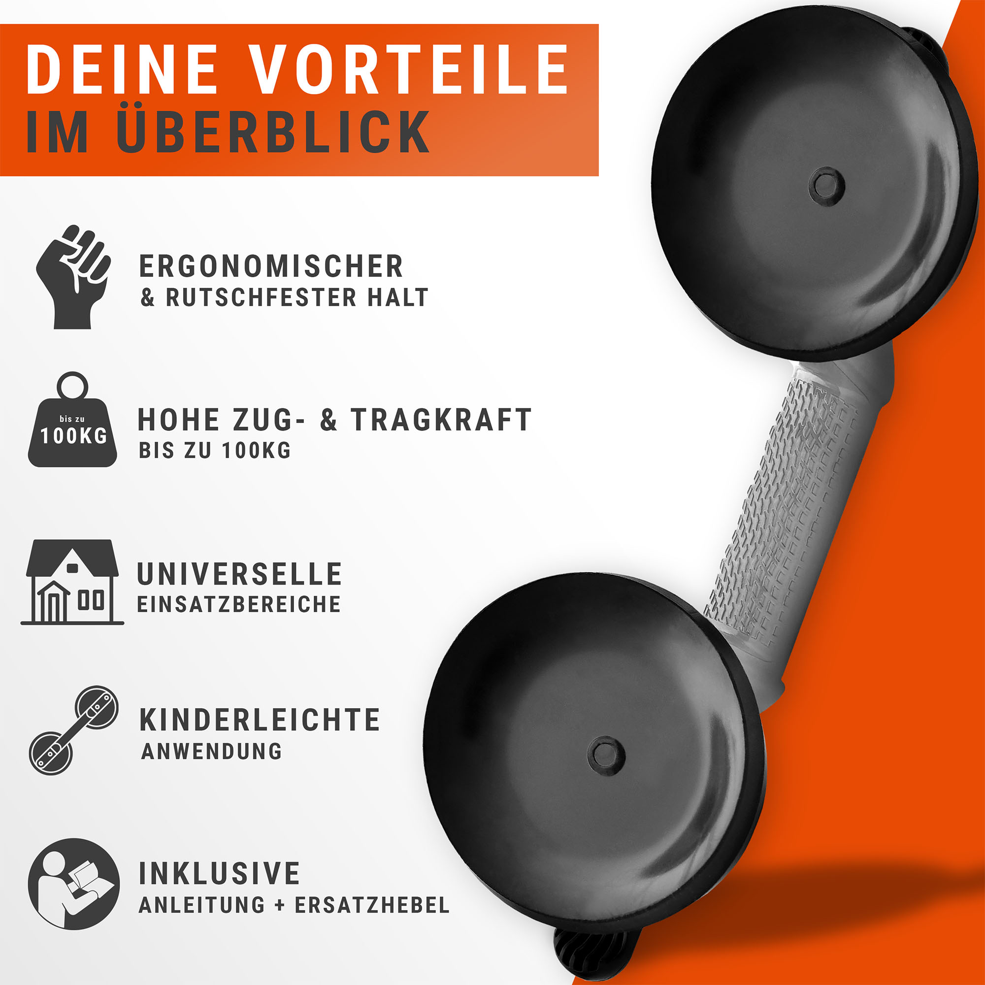 - MAXIMALE TRAGFÄHIGKEIT – Dank des extra starken Vakuum & der besonderen Verarbeitung erreicht der Fliesenheber eine Tragfähigkeit von bis zu 100kg horizontal & bis zu 80kg vertikal!